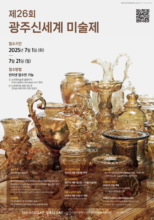 광주신세계는 수상 작가의 창작을 적극적으로 지원하기 위해 지난해부터 대상 상금을 500만 원 증액하여, 대상 2,000만 원, 신진작가상 1,000만 원의 총상금을 수여합니다. 또한, 2026년 초대 개인전의 기회를 제공하여 지역 미술의 미래를 선도할 작가들이 안정적으로 활동할 수 있는 든든한 토대를 만들고자 합니다.